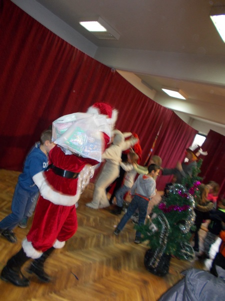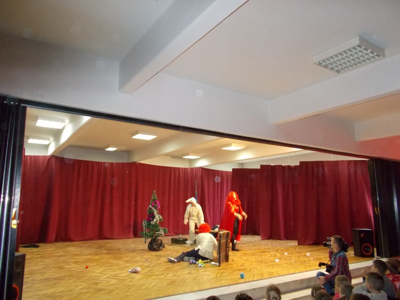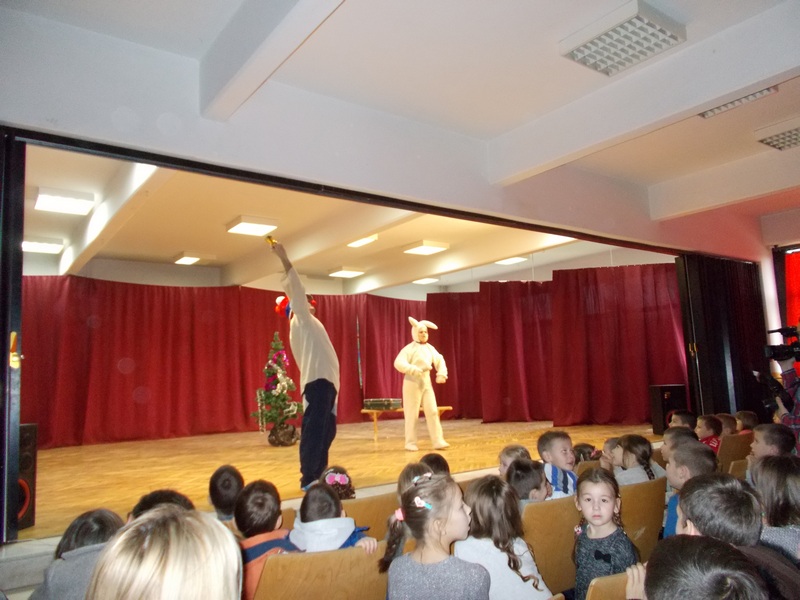 Поред луцкастих кловнова, ученици су имали прилику да се сликају и друже са Деда ,Mразом, као и да им он уручи новогодишњи пакетић. Ова интерактивна представа забавног карактера измамила је осмехе публике, ученици су се забавили и смехом узвратили дивним глумцима.